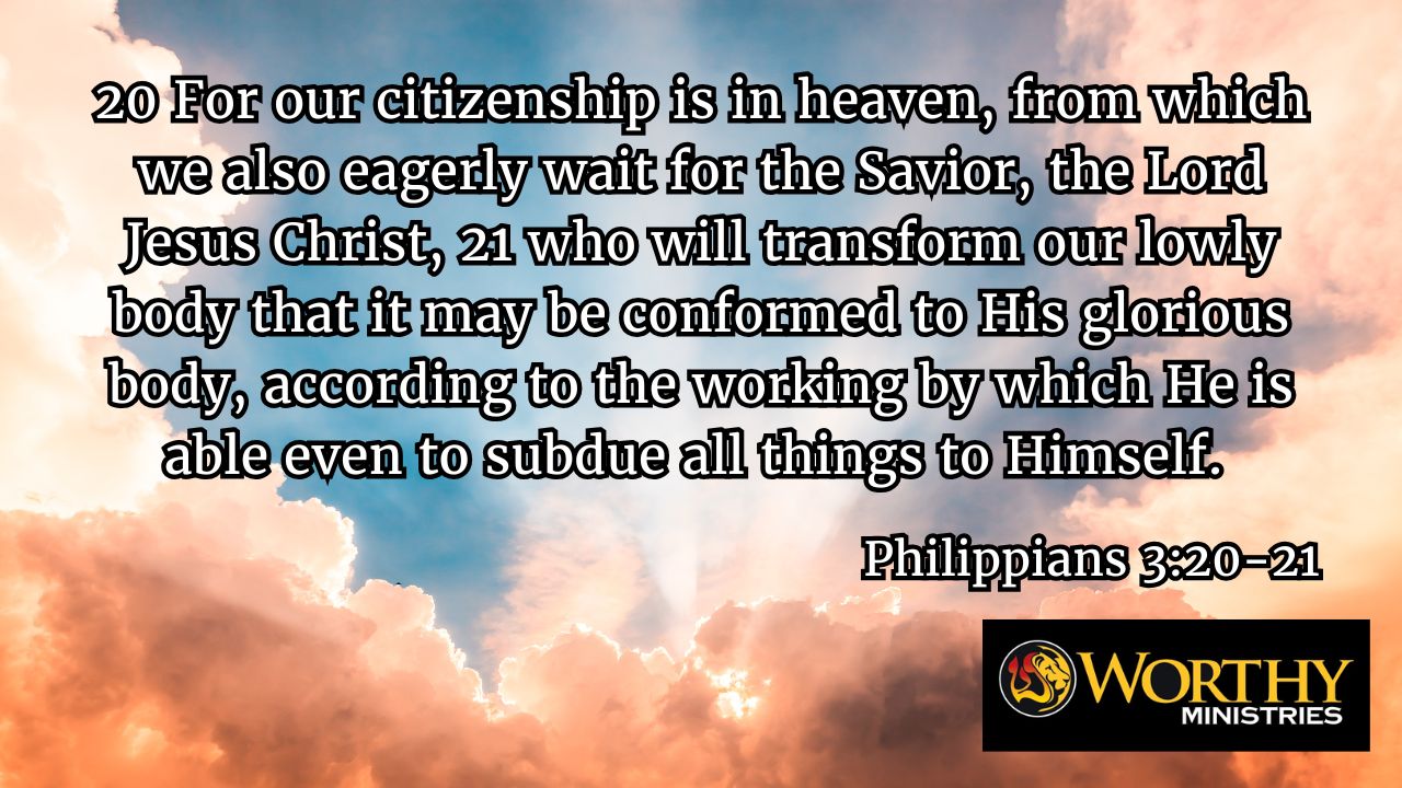 Philippians 3:20-21 For our citizenship is in heaven, from which we also eagerly wait for the Savior, the Lord Jesus Christ, 21 who will transform our lowly body that it may be conformed to His glorious body, according to the working by which He is able even to subdue all things to Himself.